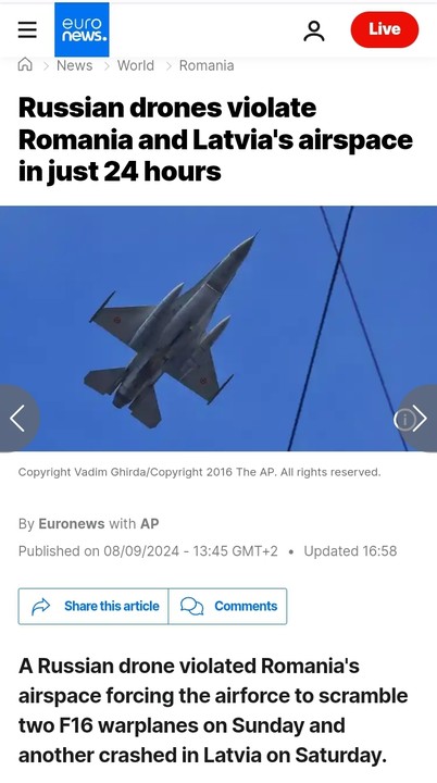⚡️Doi membri NATO au declarat duminică că dronele rusești au încălcat spațiul aerian, deoarece una ar fi zburat în România în timpul atacurilor nocturne asupra Ucrainei .