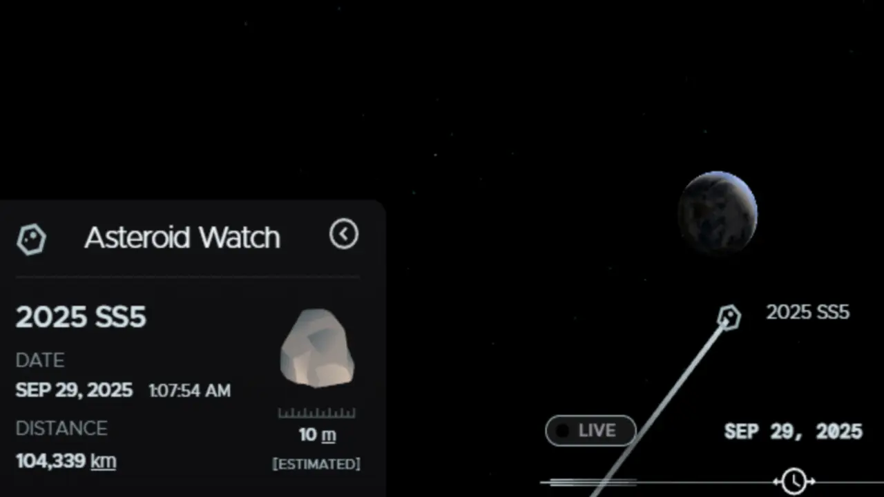 La data de 28 septembrie 2025, ora 21:57 UTC, asteroidul 2025 SS5 va avea o apropiere strânsă de Pământ, la o distanță minimă de 0.27 distanțe lunare (LD) – echivalent cu aproximativ 104 000 km (64 600 mile) față de centrul planetei noastre. Viteza relativă de deplasare în timpul întâlnirii va fi de 7.97 km/s.